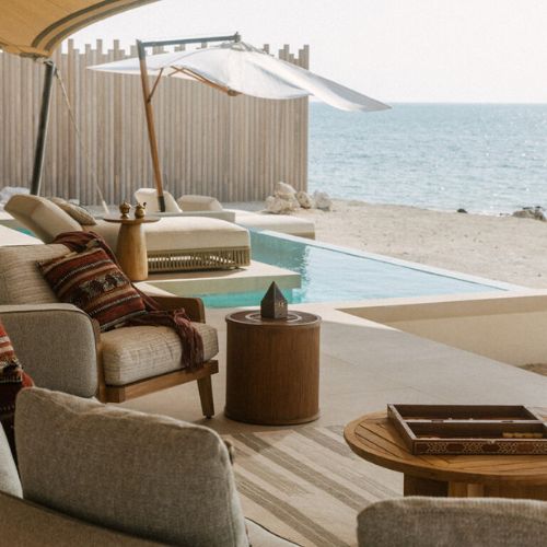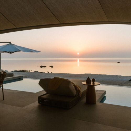 Just steps from the calm waters of the Arabian Gulf, the resort features 48 luxury villas with one to four bedrooms, each offering private plunge pools and spacious outdoor decks. Inspired by Qatar’s heritage, the villas showcase earthy tones, natural textures, and local design elements, creating a modern yet culturally rooted stay.
